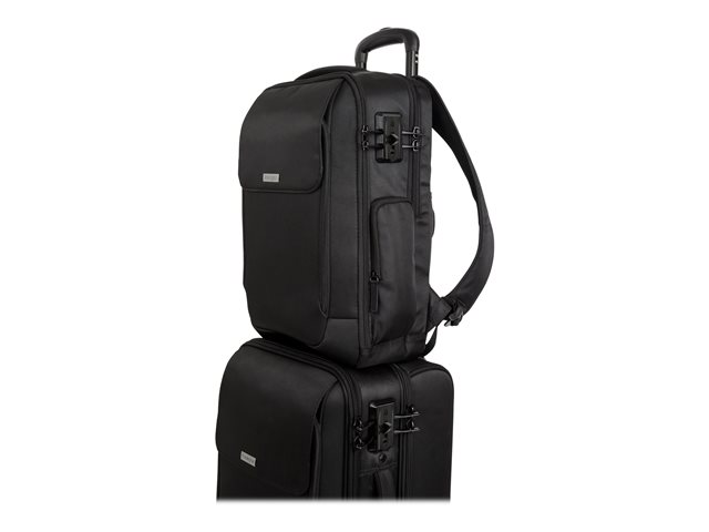 Lors de vos trajets quotidiens ou vos déplacements professionnels, le sac à dos SecureTrek 15,6" protège non seulement votre ordinateur portable contre les chocs, mais aussi contre le vol, grâce à son mécanisme de sécurité. Protégez le contenu de votre sac à dos en reliant les quatre fermetures au système de verrouillage SecureTrek, puis ajoutez un câble de sécurité Kensington. Ce dernier point fixe. Vous pouvez également utiliser un câble de sécurité agréé TSA lorsque vous prenez l'avion. Protégés par un tissus en Poly Twill, votre ordinateur portable et votre tablette trouveront leur place dans des compartiments rembourrés dont l'accès est sécurisé par une fermeture éclair anti-perforation. Ce sac offre de nombreux rangements pour toutes vos affaires, un dos rembourré pour plus de confort et un passant pour le fixer sur à un sac à roulettes.