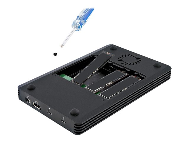 StarTech.com 4 Bay Thunderbolt 3 NVMe Enclosure, For M.2 NVMe Solid State Drives, 1x DisplayPort Video & 2x TB3 Downstream Ports, Up to 40Gbps, 72W Power Supply - 4 Bay M.2 SSD External Hard Drive Enclosure (M2E4BTB3) - Boitier externe - M.2 - M.2 NVMe Card / PCIe (NVMe) - Thunderbolt 3 - noir M2E4BTB3