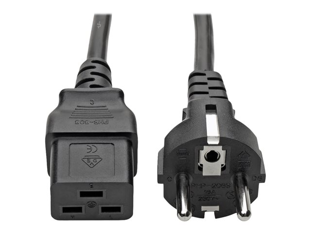 Cordon d'alimentation Tripp Lite Heavy Duty 2.43 m (8-ft.) C19 vers Schuko CEE 7/7. Construit avec un fil H05VV-F 3G de 1,5 mm, des extrémités entièrement moulées et une capacité de 250 V/16 A.