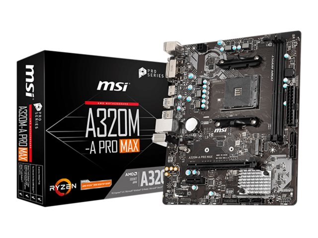 MSI A320M-A PRO MAX - Carte-mère - Socket AM4 - AMD A320 Chipset - USB 3.1 Gen 1 - Gigabit LAN - carte graphique embarquée (unité centrale requise) - audio HD (8 canaux)