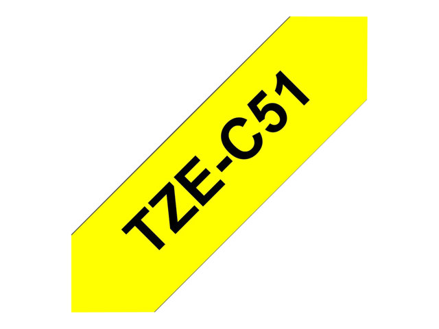Grâce à notre technologie de laminage brevetée, conçue pour résister aux températures extrêmes, à l'eau, à la lumière du soleil et à l'abrasion, vous pouvez utiliser le ruban pour étiqueteuse TZe-C51 Brother noir sur jaune fluorescent en toute tranquillité : le texte ne s'estompera pas.