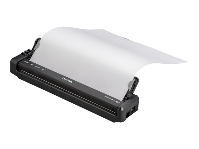 Ce guide papier se clipse facilement sur votre imprimante PocketJet pour faciliter l'alimentation en feuilles individuelles. La partie supérieure se replie pour révéler les guides de largeur réglable qui s'adaptent aux formats de papier ou d'étiquettes souhaités et permettent une alimentation et une impression droites. Rabattez la partie supérieure pour faciliter la manipulation, le transport et le stockage. La conception de l'imprimante vous permet d'accéder pleinement aux ports USB et d'alimentation situés sur le côté de l'imprimante, ainsi qu'aux boutons d'alimentation, d'alimentation du papier et aux boutons radio situés sur le dessus de l'imprimante.