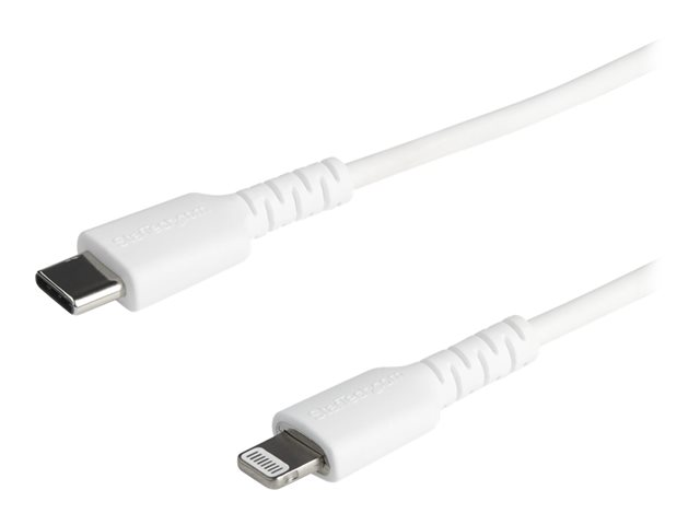 Ce câble USB C 2m Blanc vers Lightning résiste aux exigences quotidiennes de chargement et de synchronisation de votre iPad, iPhone ou autres appareils mobiles équipés du connecteur Lightning. Testé pour résister à l''usure et à l''utilisation en voiture en hiver comme en été, ce câble solide et robuste est idéal pour les applications professionnelles et grand public.