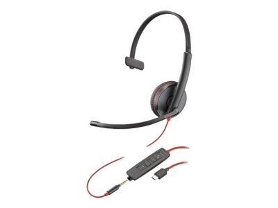 Poly Blackwire C3215 - Blackwire 3200 Series - micro-casque - sur-oreille - filaire - Suppresseur de bruit actif - jack 3,5mm, USB-C - noir - Certifié Skype, Certifié Avaya, certifié Cisco Jabber 80S05A6