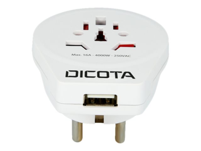 DICOTA World Adapter PRO & USB - Adaptateur secteur - CA 110/220 V - blanc D31282