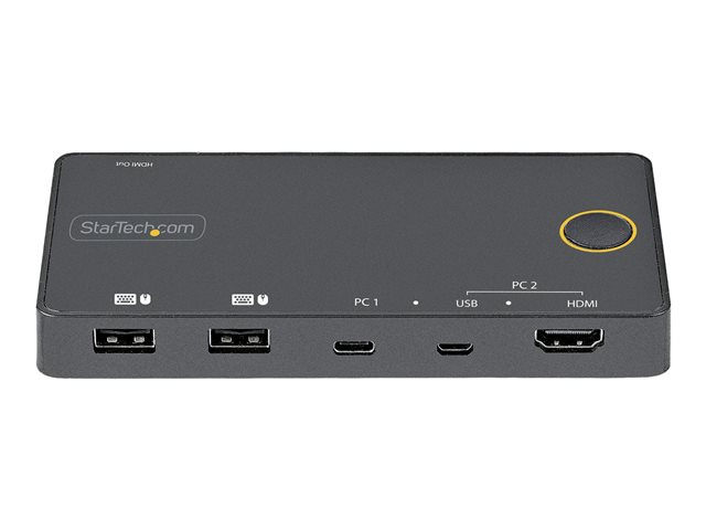 Ce switch KVM USB-C / USB-A à 2 ports vous permet de passer facilement d'un ordinateur de bureau/portable USB Type-C ou Thunderbolt 3 à un ordinateur de bureau/portable USB-A et HDMI, en utilisant un seul clavier, un seul écran HDMI et une seule souris.